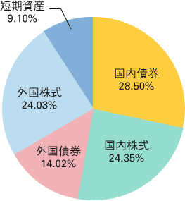 年金積立金全体に占める運用資産別の構成割合は、国内債券が最も多く28.50%、次いで国内株式の24.35%となっている(図2)。